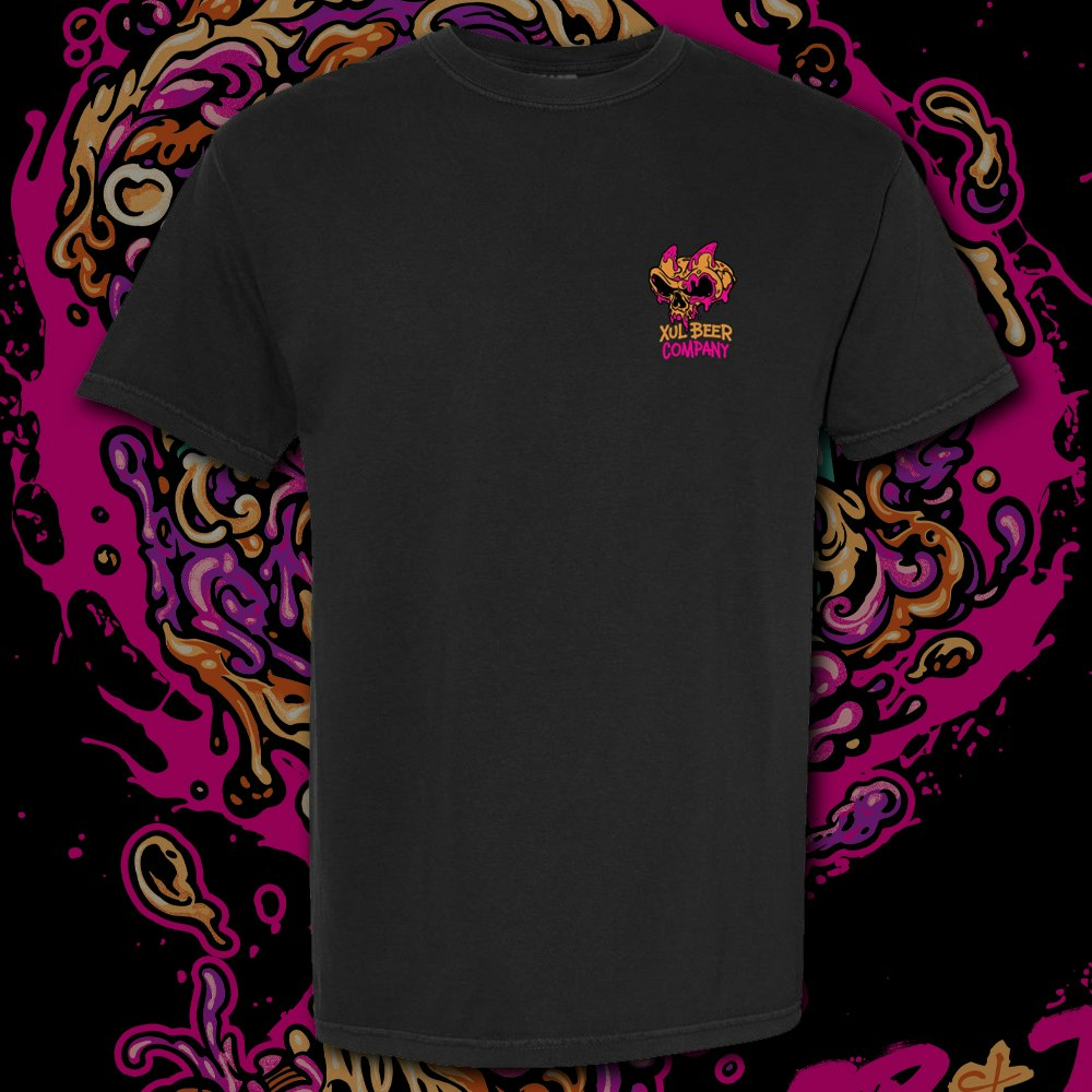 Premium black Comfort Colors heavyweight shirt with a new twist on our “PB&J Mixtape” can art on the back and the signature Xul PB&J fanghead on the front left breast.