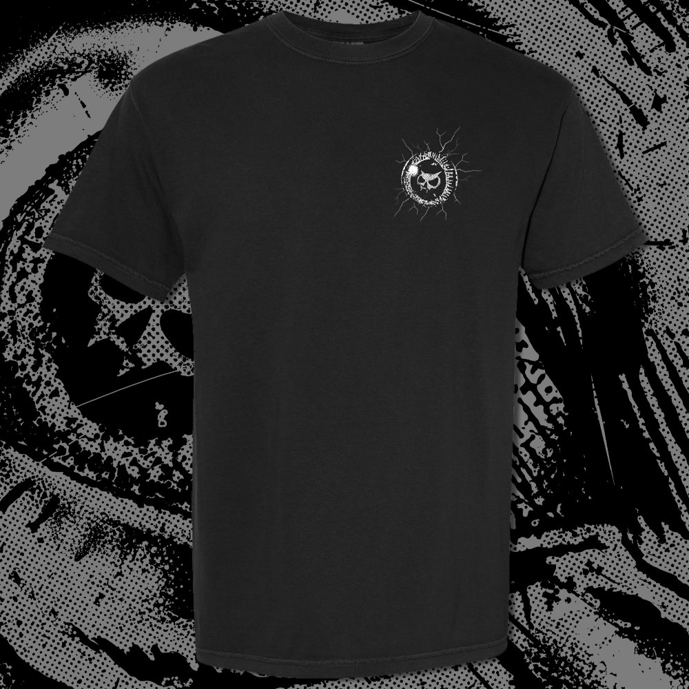Premium black Comfort Colors heavyweight shirt with our Eye of Madness design on the back and the Xul fanghead on the front left breast.