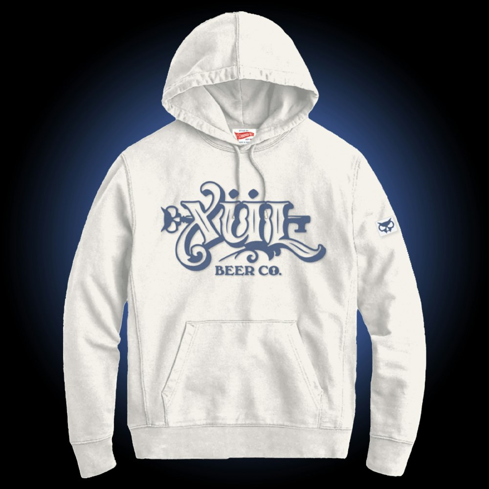 Heavyweight Standard Rec White hoodie with Xul’s classic logo embroidered on the front in navy. Extremely nice quality and impressive attention to detail.